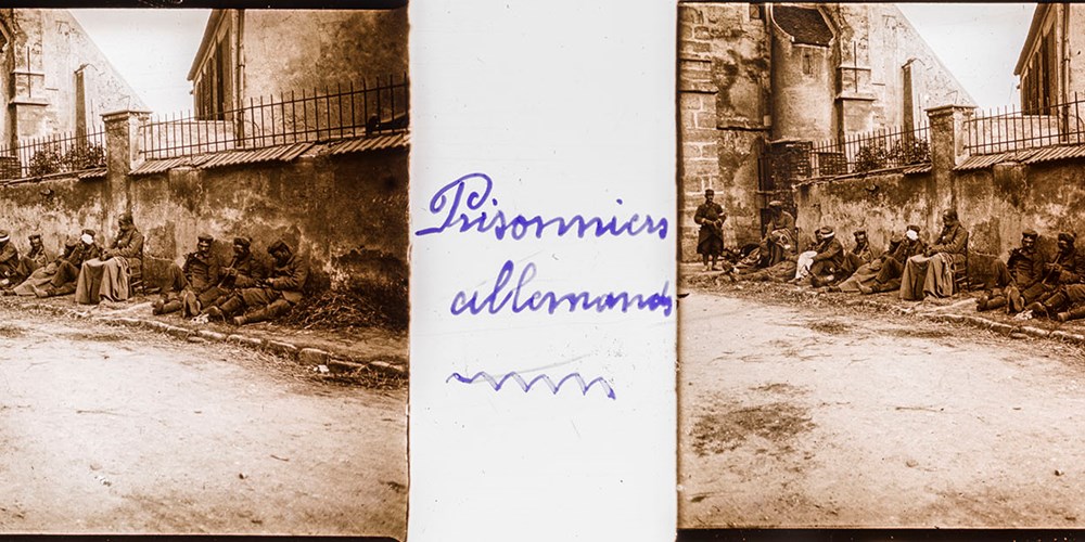 Exceptional quality stereoview; photojournalist would have sold this for sureImage Id: 1949 Contributor: The Jordan/Ference Collection Theatre: Western Front Subject: Prisoners Location: France Regiment: Unknown Service Arm: Unknown Battle: Unknown Date: 1914 Combatants: French/German Publisher: French Photojournalist 1914 Source: French Directory: Set of 43 Webres