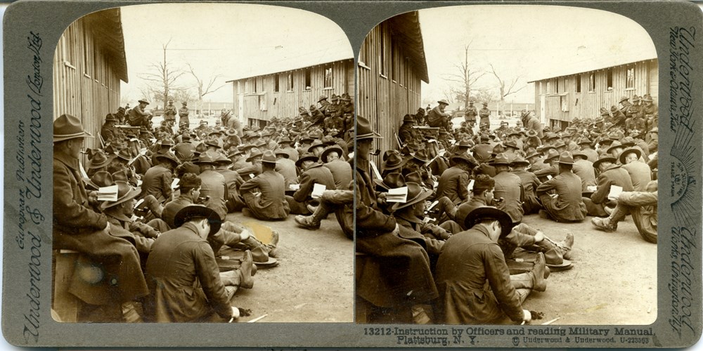 Image Id: 1966 Contributor: The Jordan/Ference Collection Theatre: Home Front Subject: Training Location: Plattsburg, New York, USA Regiment: Unknown Service Arm: Infantry Battle: Unknown Date: Unknown Combatants: American Publisher: Underwood & Underwood (American) Source: American Directory: 13088-14033