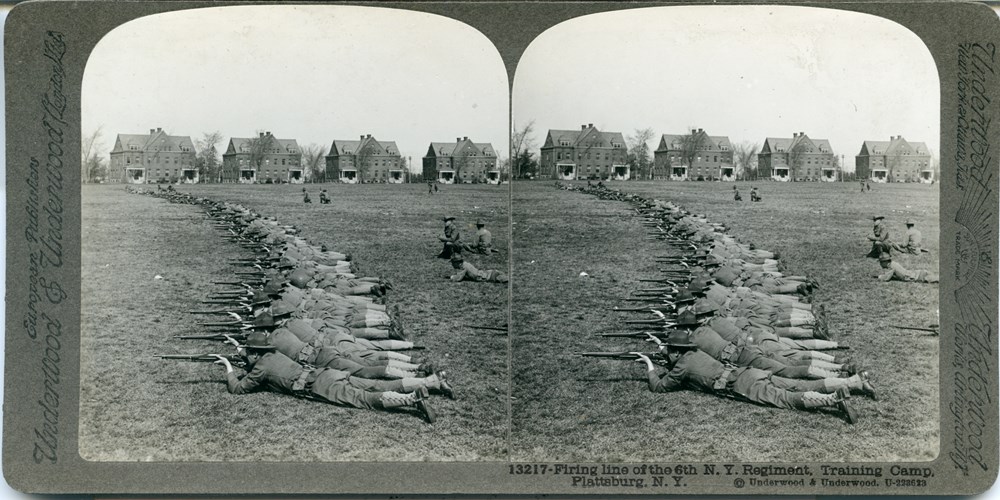 Image Id: 1971 Contributor: The Jordan/Ference Collection Theatre: Home Front Subject: Training Location: Plattsburg, New York, USA Regiment: 6th New York Regiment Service Arm: Infantry Battle: Unknown Date: Unknown Combatants: American Publisher: Underwood & Underwood (American) Source: American Directory: 13088-14033