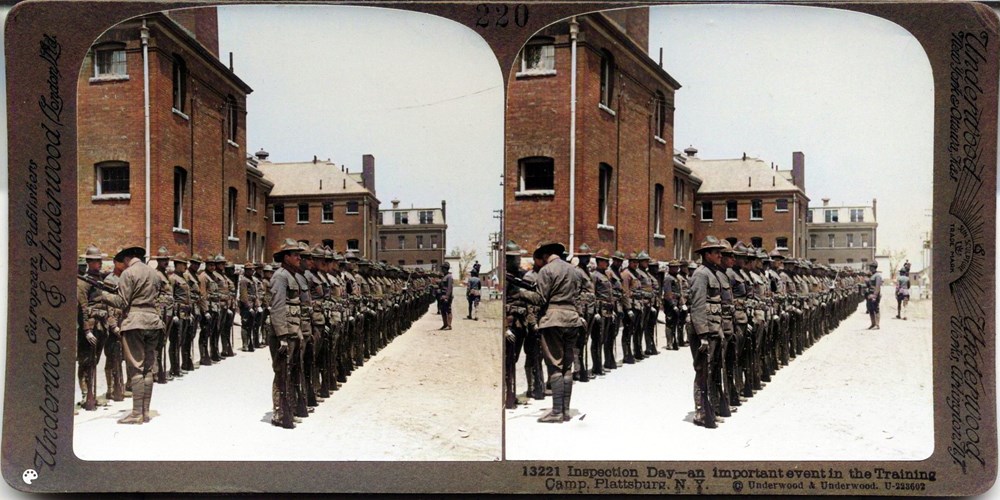 Image Id: 1974 Contributor: The Jordan/Ference Collection Theatre: Home Front Subject: Training Location: Plattsburg, New York, USA Regiment: Unknown Service Arm: Infantry Battle: Unknown Date: Unknown Combatants: American Publisher: Underwood & Underwood (American) Source: American Directory: 13088-14033
