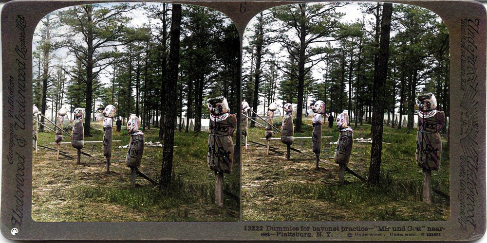 Dummies for bayonet practice - "Mir und Gott" nearest - Plattsburg, N.Y.