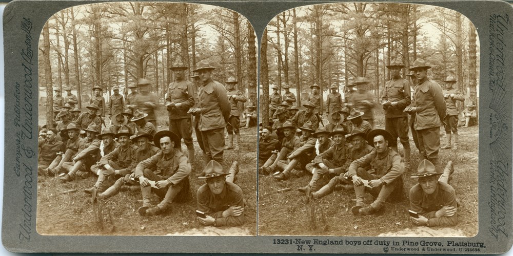 Image Id: 1983 Contributor: The Jordan/Ference Collection Theatre: Home Front Subject: Training Location: Plattsburg, New York, USA Regiment: New England Service Arm: Infantry Battle: Unknown Date: Unknown Combatants: American Publisher: Underwood & Underwood (American) Source: American Directory: 13088-14033