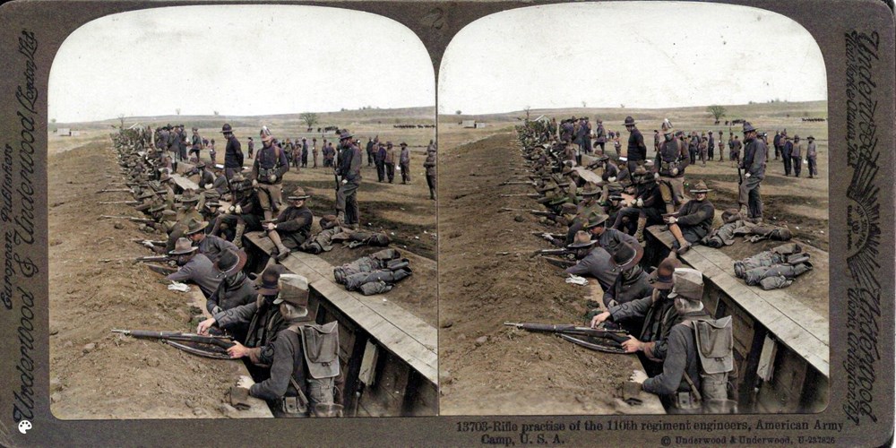 Rifle practise of the 110th regiment engineers, American Army Camp, U.S.A.