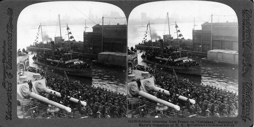 Soldiers returning from France on "Louisiana," welcomed by Mayor's Committee of N.Y.