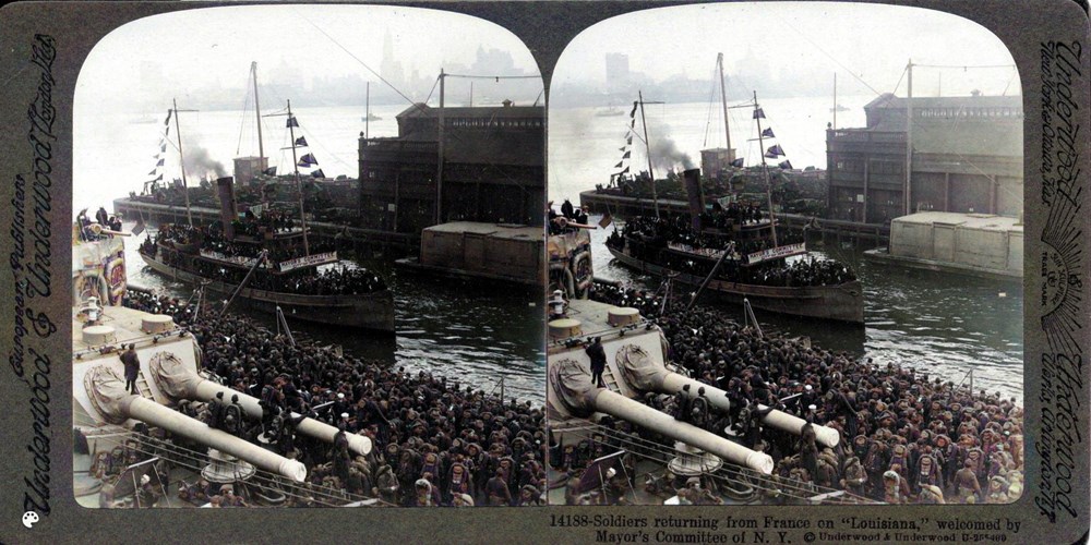 Image Id: 2029 Contributor: The Jordan/Ference Collection Theatre: Home Front Subject: Homecoming Location: New York, USA Regiment: Louisiana Service Arm: Infantry Battle: Unknown Date: Unknown Combatants: American Publisher: Underwood & Underwood (American) Source: American Directory: 14044-14325