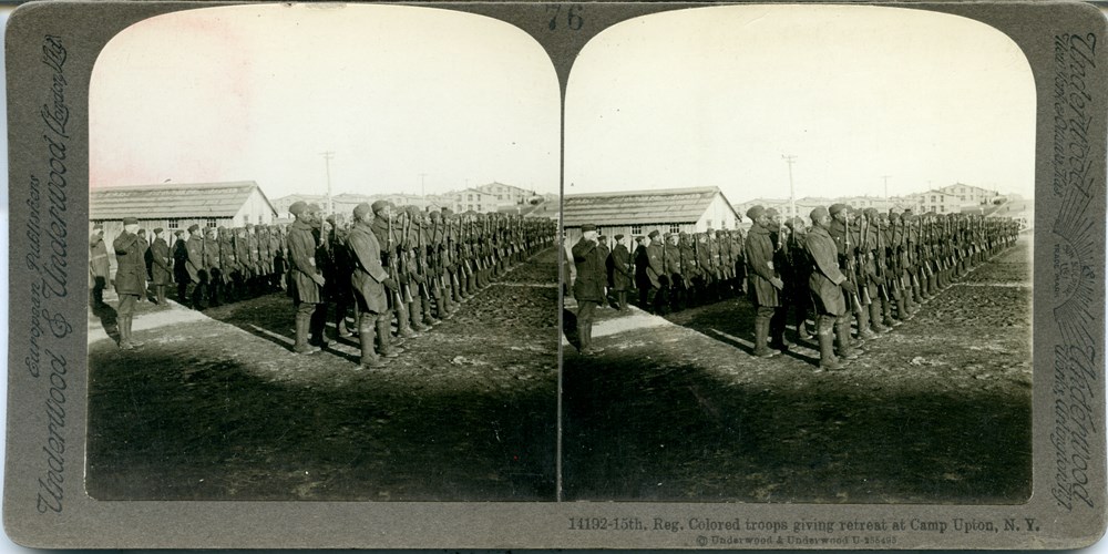 Image Id: 2030 Contributor: The Jordan/Ference Collection Theatre: Home Front Subject: Training Location: Camp Upton, New York, USA Regiment: 15th Regiment Service Arm: Infantry Battle: Unknown Date: Unknown Combatants: American Publisher: Underwood & Underwood (American) Source: American Directory: 14044-14325