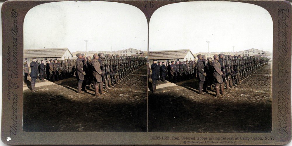 Image Id: 2030 Contributor: The Jordan/Ference Collection Theatre: Home Front Subject: Training Location: Camp Upton, New York, USA Regiment: 15th Regiment Service Arm: Infantry Battle: Unknown Date: Unknown Combatants: American Publisher: Underwood & Underwood (American) Source: American Directory: 14044-14325