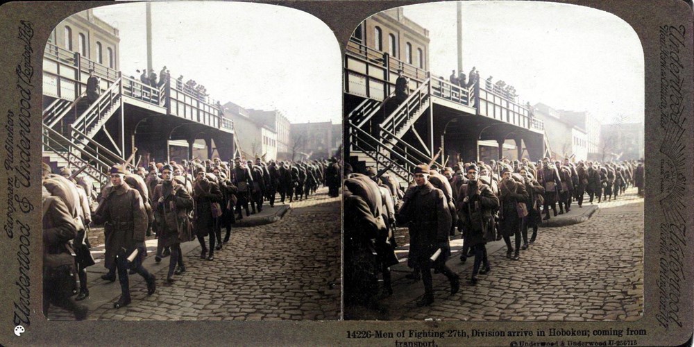 Image Id: 2047 Contributor: The Jordan/Ference Collection Theatre: Post-War Subject: Homecoming Location: Hoboken, New York, USA Regiment: 27th Division Service Arm: Infantry Battle: Unknown Date: Unknown Combatants: American Publisher: Underwood & Underwood (American) Source: American Directory: 14044-14325