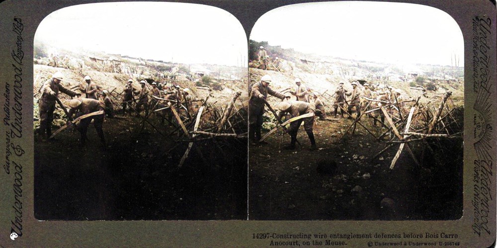 Constructing wire entanglement defences before Bois Carre Anocourt, on the Meuse