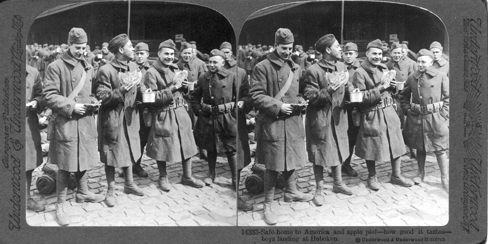 Safe home to America and apple pie!--how good it tastes--boys landing at Hoboken
