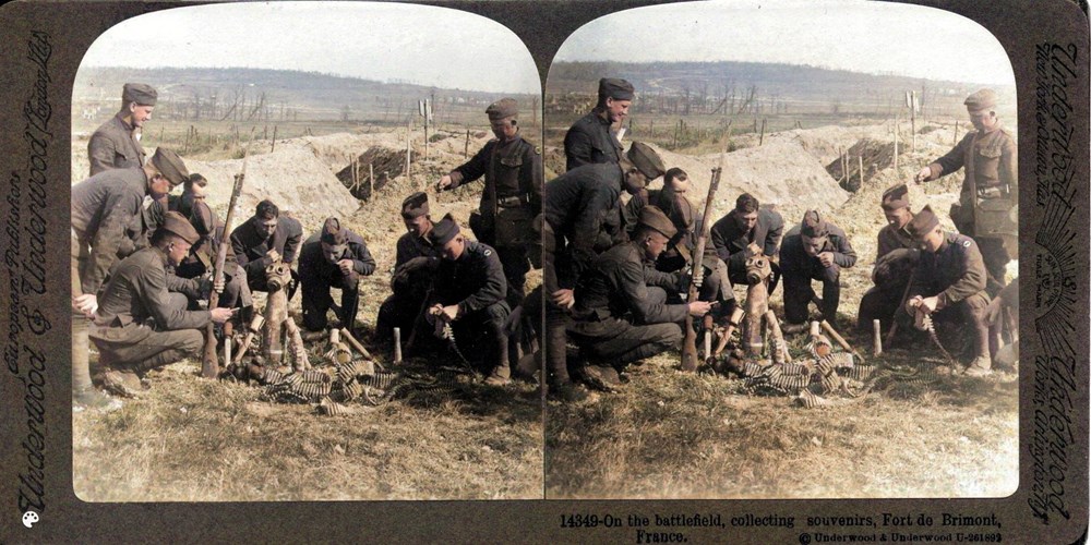 On the battlefield, collecting souvenirs, Fort de Brimont, France