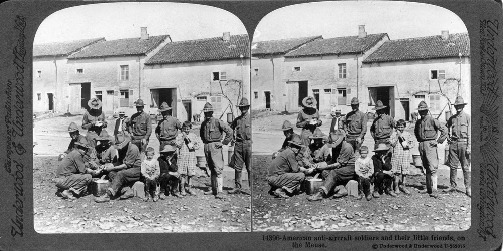 American anti-aircraft soldiers and their little friends, on the Meuse