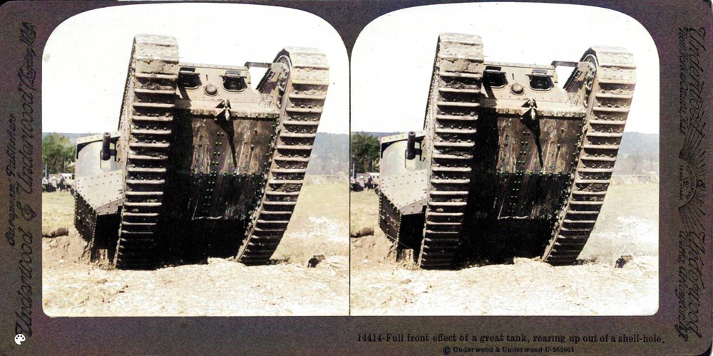 Image Id: 2101 Contributor: The Jordan/Ference Collection Theatre: Western Front Subject: The Front Line Location: Unknown Regiment: Unknown Service Arm: Tanks/Armoured Cars Battle: Unknown Date: Unknown Combatants: British Publisher: Underwood & Underwood (American) Source: American Directory: 14326-14510