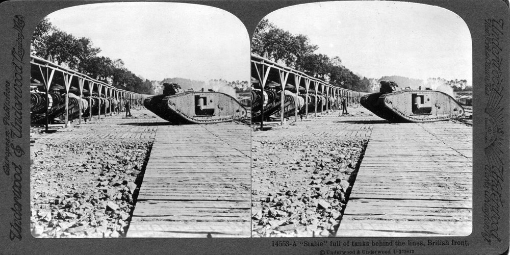 Image Id: 2106 Contributor: The Jordan/Ference Collection Theatre: Western Front Subject: Behind the Lines Location: Unknown Regiment: Unknown Service Arm: Tanks/Armoured Cars Battle: Unknown Date: Unknown Combatants: British Publisher: Underwood & Underwood (American) Source: American Directory: 14536 Plus
