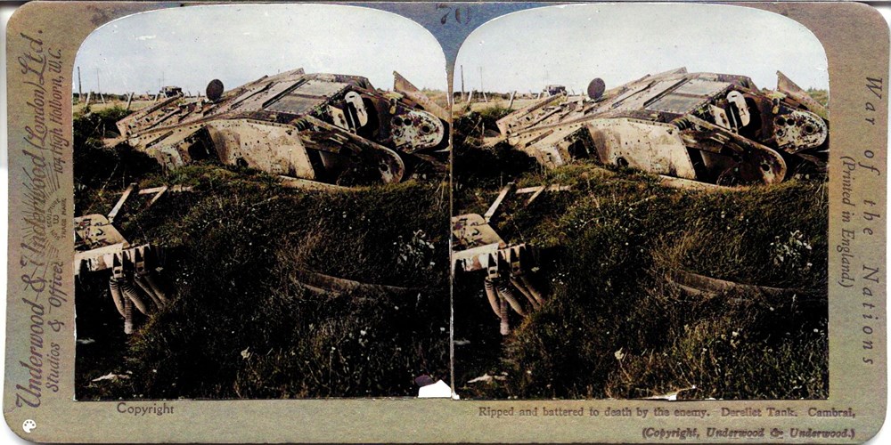 Image Id: 211 Contributor: The Jordan/Ference Collection Theatre: Western Front Subject: Battle Aftermath Location: Cambrai, France Regiment: Unknown Service Arm: Tanks/Armoured Cars Battle: Unknown Date: Unknown Combatants: British Publisher: Underwood & Underwood Source: British Directory: MISC