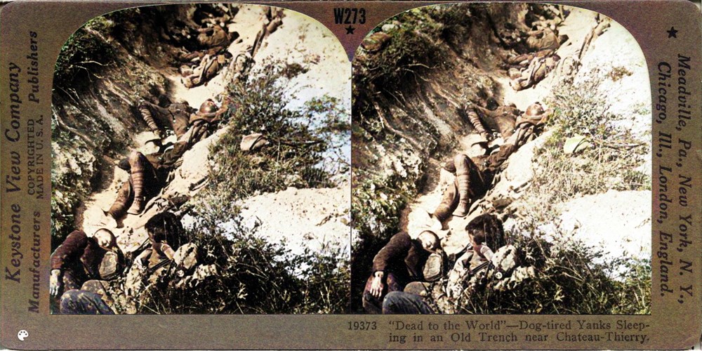 "Dead to the World"--Dog-tired Yanks Sleeping in an Old Trench near Chateau-Thierry
