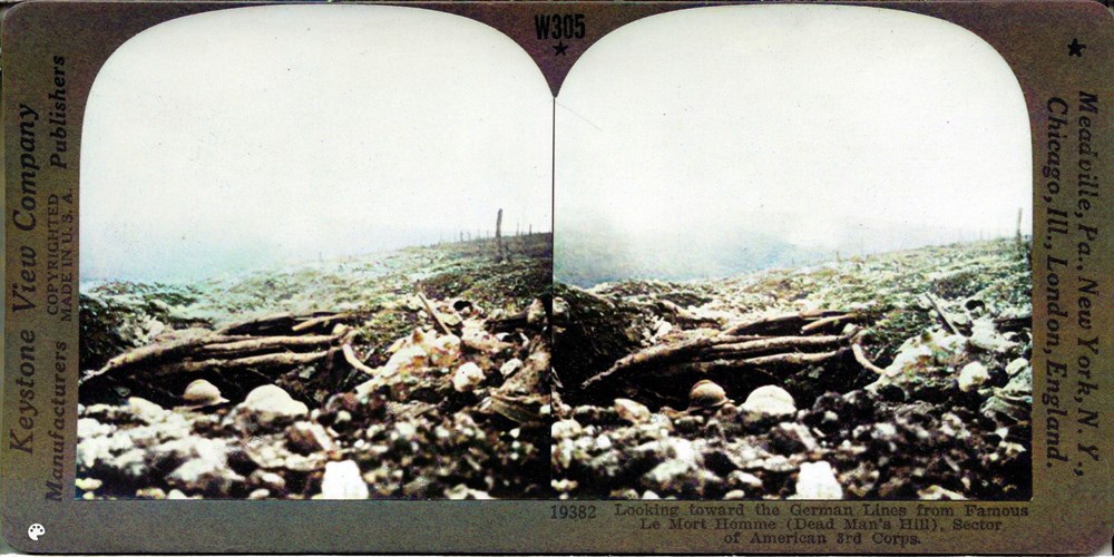 Image Id: 2128 Contributor: The Jordan/Ference Collection Theatre: Western Front Subject: The Front Line Location: Le Mort Homme,Verdun, France Regiment: Unknown Service Arm: Infantry Battle: Unknown Date: Unknown Combatants: French Publisher: Keystone View Co Source: American Directory: 19351-19599