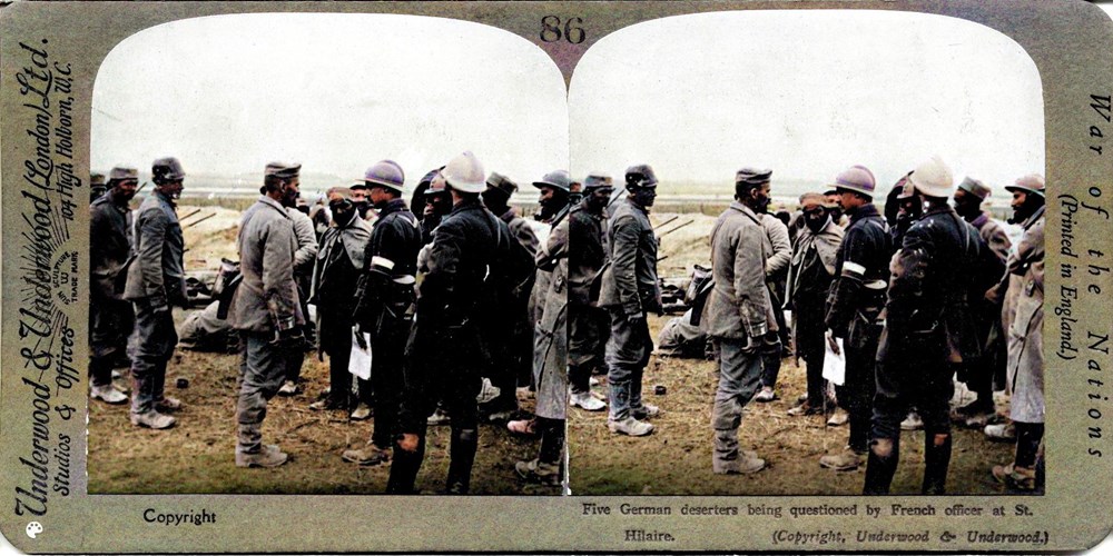 Image Id: 213 Contributor: The Jordan/Ference Collection Theatre: Western Front Subject: Prisoners Location: St. Hilaire, France Regiment: Unknown Service Arm: Infantry Battle: Unknown Date: Unknown Combatants: French / German Publisher: Underwood & Underwood Source: British Directory: MISC