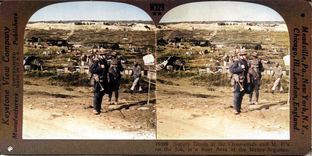 Supply Dump at the Cross-roads and M.P.'s on the Job, in a Rear Area of the Meuse-Argonne