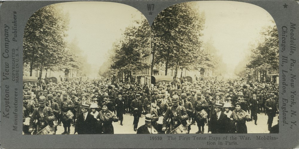 Image Id: 2149 Contributor: The Jordan/Ference Collection Theatre: Western Front Subject: Recruitment Location: Paris, France Regiment: Unknown Service Arm: Civilians Battle: Unknown Date: 1914 Combatants: French Publisher: Keystone View Co Source: American Directory: 19351-19599