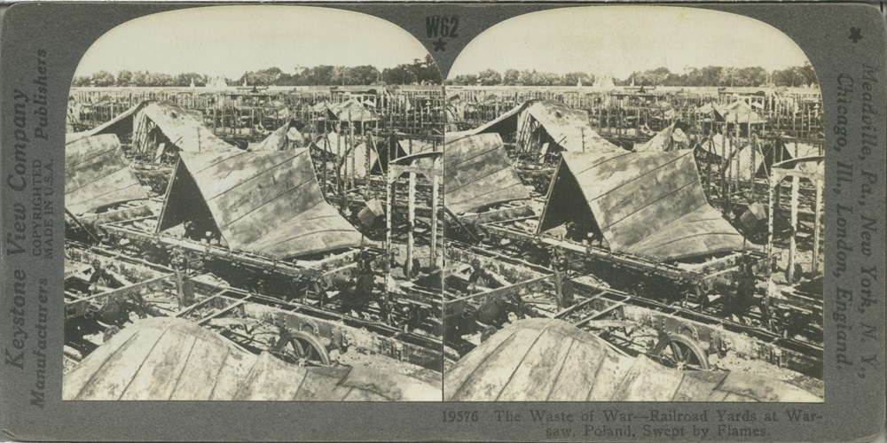 The Waste of War--Railroad Yards at Warsaw, Poland, Swept by Flames