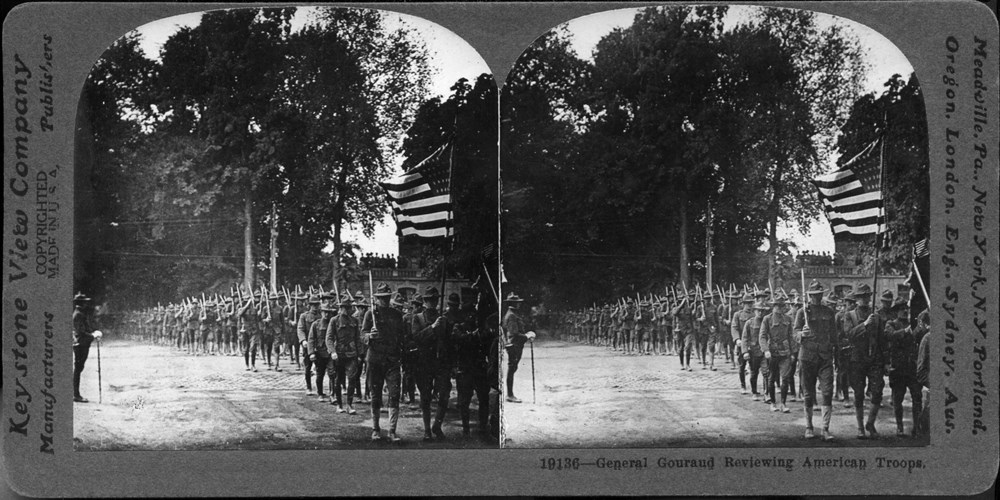 Image Id: 2206 Contributor: The Jordan/Ference Collection Theatre: Western Front Subject: Parades Location: Unknown Regiment: Unknown Service Arm: Infantry Battle: Unknown Date: Unknown Combatants: American Publisher: Keystone View Co Source: American Directory: 19100-19199