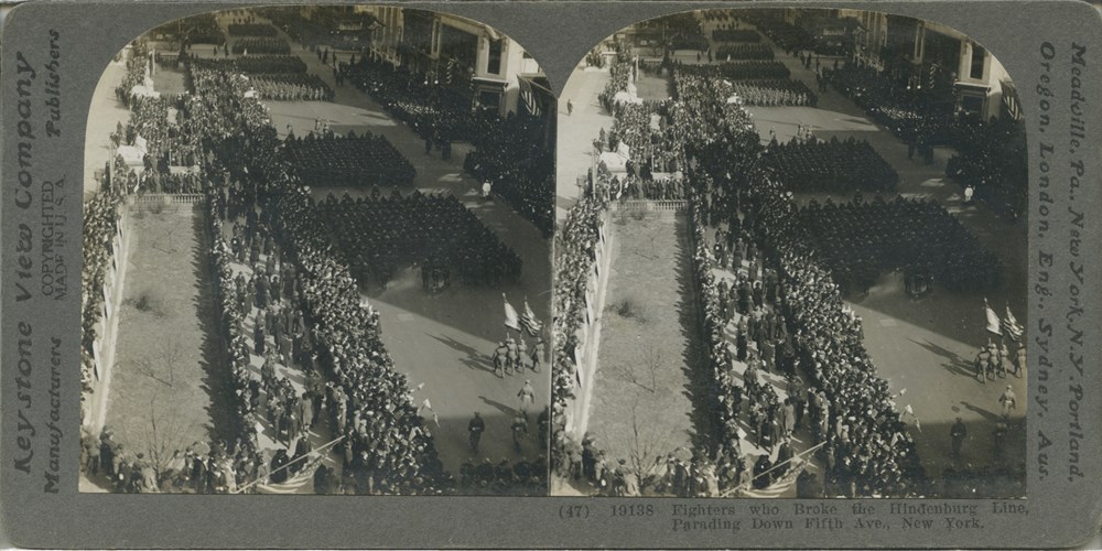 Image Id: 2208 Contributor: The Jordan/Ference Collection Theatre: Post-War Subject: Parades Location: New York, USA Regiment: Unknown Service Arm: Infantry Battle: Unknown Date: Unknown Combatants: American Publisher: Keystone View Co Source: American Directory: 19100-19199