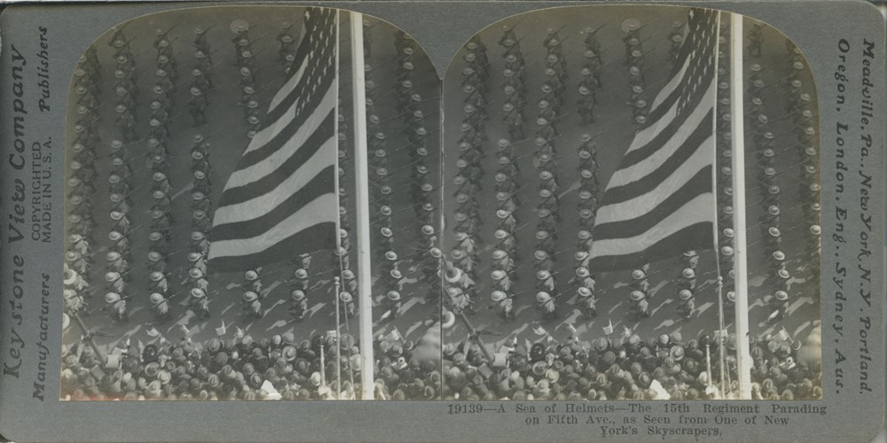Image Id: 2209 Contributor: The Jordan/Ference Collection Theatre: Post-War Subject: Parades Location: New York, USA Regiment: 15th Regiment (U.S) Service Arm: Infantry Battle: Unknown Date: Unknown Combatants: American Publisher: Keystone View Co Source: American Directory: 19100-19199
