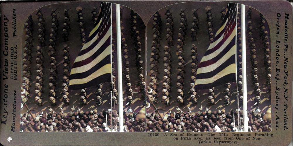 Image Id: 2209 Contributor: The Jordan/Ference Collection Theatre: Post-War Subject: Parades Location: New York, USA Regiment: 15th Regiment (U.S) Service Arm: Infantry Battle: Unknown Date: Unknown Combatants: American Publisher: Keystone View Co Source: American Directory: 19100-19199