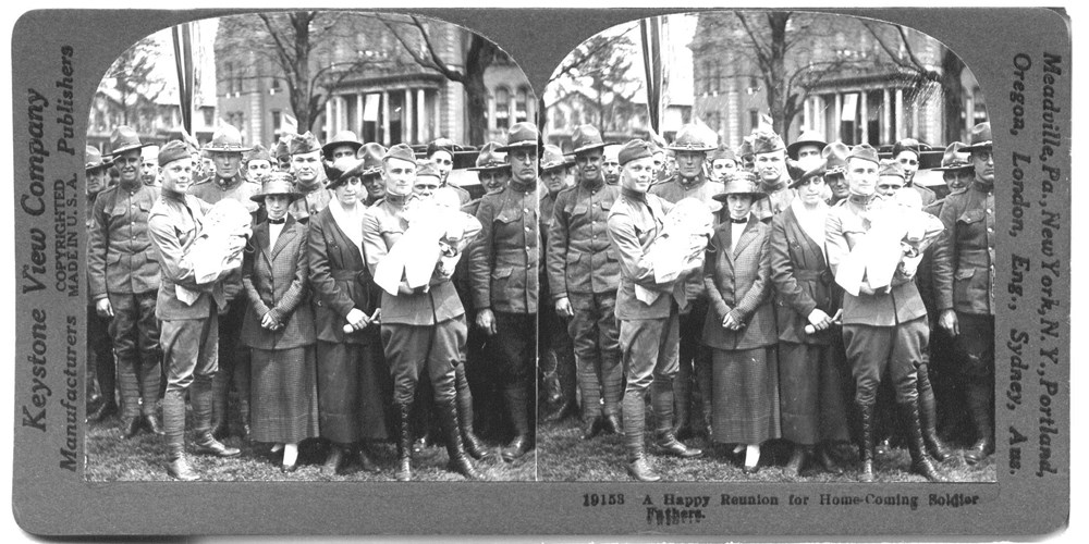 Image Id: 2217 Contributor: The Jordan/Ference Collection Theatre: Post-War Subject: Homecoming Location: Unknown Regiment: Unknown Service Arm: Infantry Battle: Unknown Date: Unknown Combatants: American Publisher: Keystone View Co Source: American Directory: 19100-19199