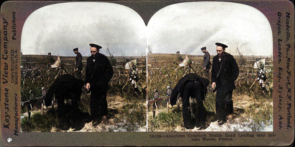 Image Id: 2220 Contributor: The Jordan/Ference Collection Theatre: Western Front Subject: Cemeteries & Monuments Location: Belleau Woods, France Regiment: Unknown Service Arm: Unknown Battle: Unknown Date: Unknown Combatants: Unknown Publisher: Keystone View Co Source: American Directory: 19100-19199