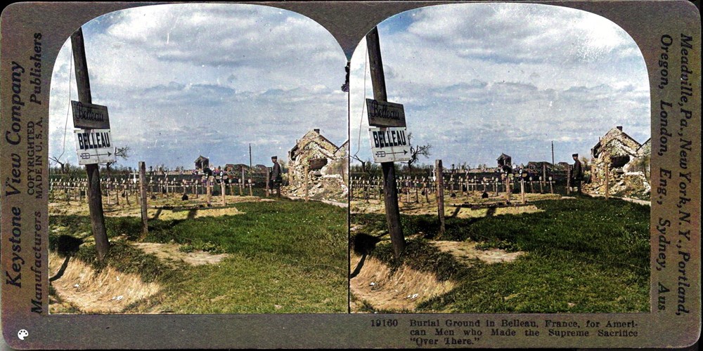 Image Id: 2221 Contributor: The Jordan/Ference Collection Theatre: Western Front Subject: Cemeteries & Monuments Location: Belleau Woods, France Regiment: Unknown Service Arm: Unknown Battle: Unknown Date: Unknown Combatants: Unknown Publisher: Keystone View Co Source: American Directory: 19100-19199