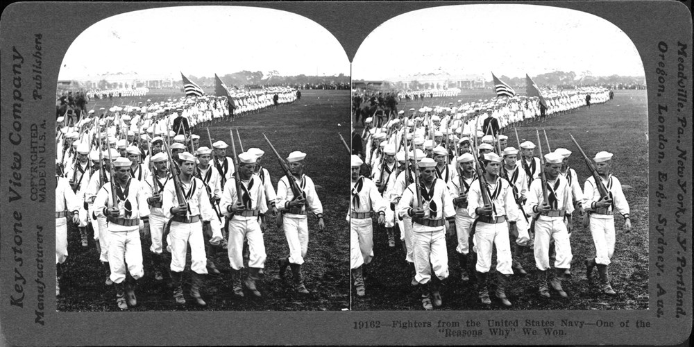Original from Jamestown Exposition, 1907. KILBURN card is a different photo of the same eventImage Id: 2223 Contributor: The Jordan/Ference Collection Theatre: Post-War Subject: Parades Location: Unknown Regiment: Unknown Service Arm: Navy Battle: Unknown Date: Unknown Combatants: American Publisher: Keystone View Co Source: American Directory: 19100-19199