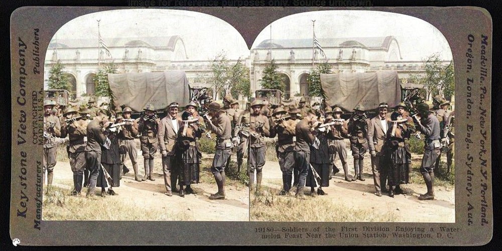 Soldiers of the First Division Enjoying a Watermelon Feast, Washington, D.C.