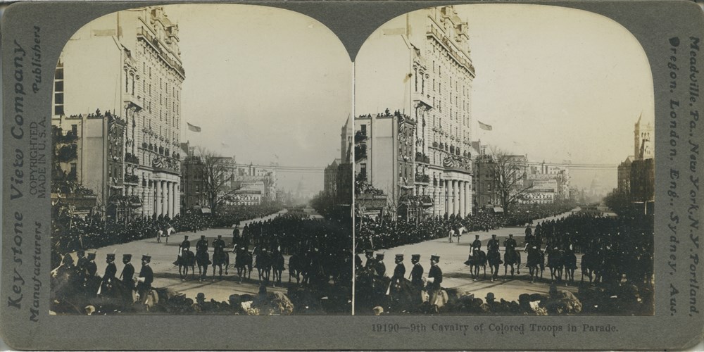 Image Id: 2243 Contributor: The Jordan/Ference Collection Theatre: Home Front Subject: Parades Location: Unknown Regiment: 9th Cavalry Service Arm: Cavalry Battle: Unknown Date: Unknown Combatants: American Publisher: Keystone View Co Source: American Directory: 19100-19199