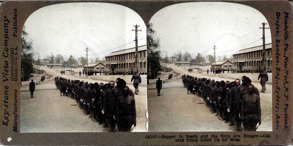 Supper is Ready & the Boys Are Hungry. Colored Troop Lined Up for Mess