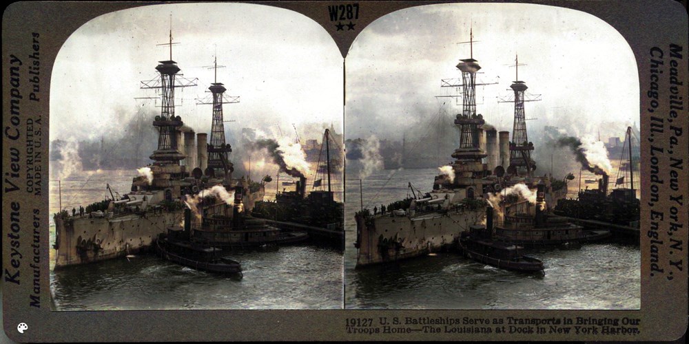 Image Id: 2276 Contributor: The Jordan/Ference Collection Theatre: Home Front Subject: Surface Vessels Location: New York, USA Regiment: U.S.S. Louisiana Service Arm: Navy Battle: Unknown Date: Unknown Combatants: American Publisher: Keystone View Co Source: American Directory: 19100-19199