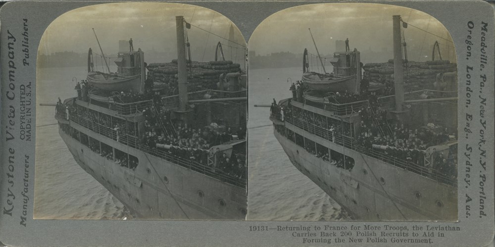 Image Id: 2280 Contributor: The Jordan/Ference Collection Theatre: Western Front Subject: Surface Vessels Location: Unknown Regiment: The Leviathan (S.S. Vaterland) Service Arm: Navy Battle: Unknown Date: Unknown Combatants: American, Polish Publisher: Keystone View Co Source: American Directory: 19100-19199