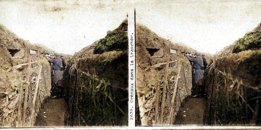 Image Id: 2287 Contributor: The Jordan/Ference Collection Theatre: Western Front Subject: The Front Line Location: Unknown Regiment: Unknown Service Arm: Infantry Battle: Unknown Date: Unknown Combatants: French Publisher: Paris-Stéréo Source: French Directory: 0-2700