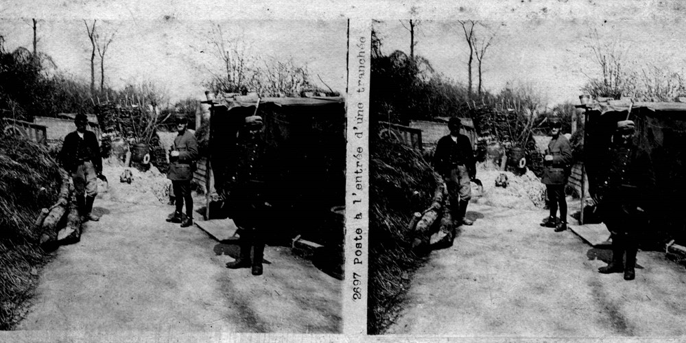 Image Id: 2327 Contributor: The Jordan/Ference Collection Theatre: Western Front Subject: The Front Line Location: Unknown Regiment: Unknown Service Arm: Infantry Battle: Unknown Date: Unknown Combatants: French Publisher: Paris-Stéréo Source: French Directory: 0-2700