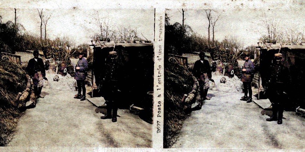 Image Id: 2327 Contributor: The Jordan/Ference Collection Theatre: Western Front Subject: The Front Line Location: Unknown Regiment: Unknown Service Arm: Infantry Battle: Unknown Date: Unknown Combatants: French Publisher: Paris-Stéréo Source: French Directory: 0-2700