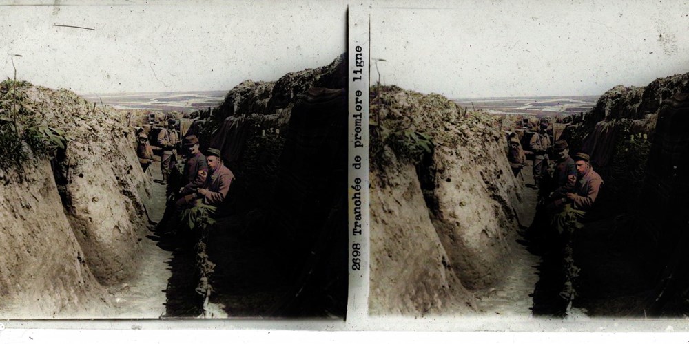 Image Id: 2328 Contributor: The Jordan/Ference Collection Theatre: Western Front Subject: The Front Line Location: Unknown Regiment: Unknown Service Arm: Infantry Battle: Unknown Date: Unknown Combatants: French Publisher: Paris-Stéréo Source: French Directory: 0-2700