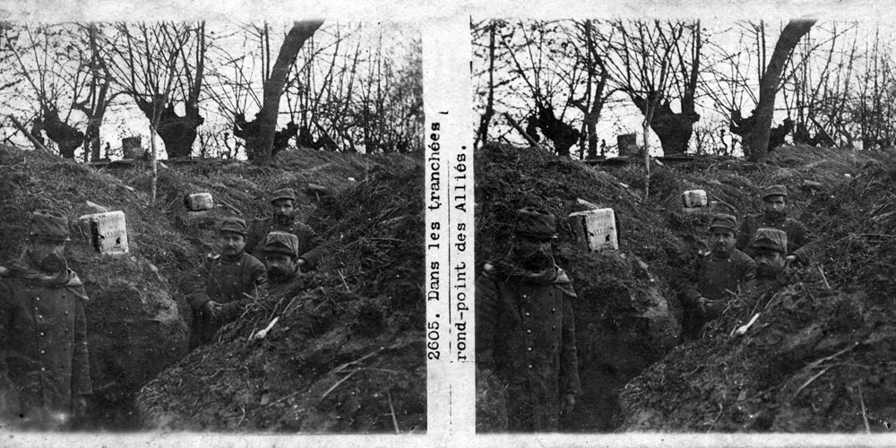 Image Id: 2331 Contributor: The Jordan/Ference Collection Theatre: Western Front Subject: The Front Line Location: Unknown Regiment: Unknown Service Arm: Infantry Battle: Unknown Date: Unknown Combatants: French Publisher: Paris-Stéréo Source: French Directory: 0-2700