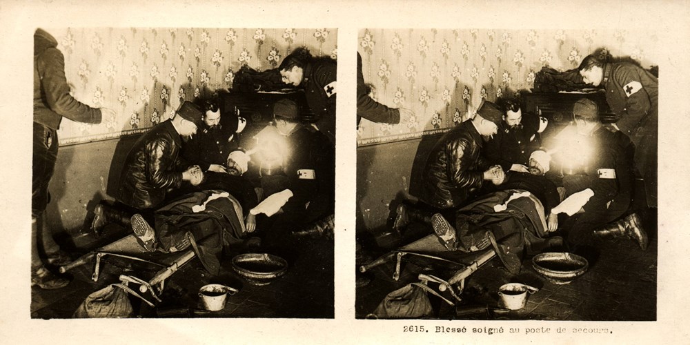 Image Id: 2334 Contributor: The Jordan/Ference Collection Theatre: Western Front Subject: Medical Scenes Location: Unknown Regiment: Unknown Service Arm: Medical Services Battle: Unknown Date: Unknown Combatants: French Publisher: Paris-Stéréo Source: French Directory: 0-2700