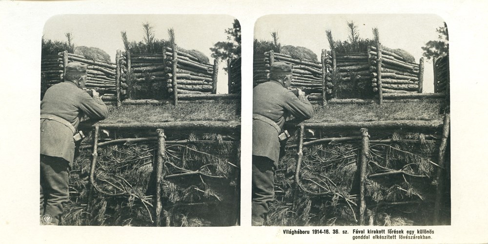 "Fával kirakott l?rések egy különös gonddal elkészitett lövészárokban" - Wood-lined gun slits in a trench made with special care