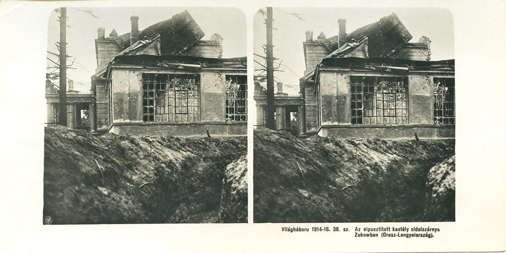 "Az elpusztitott kastély oldalszárnya Zukowban (Orosz Lengyelország)" - The wing of the destroyed castle in ?uków (Russian-occupied Poland)