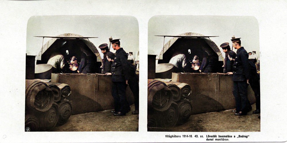 "Lövedék beemelése a "Bodrog" dunai monitóron" - Loading of a projectile on the Danube monitor "Bodrog"