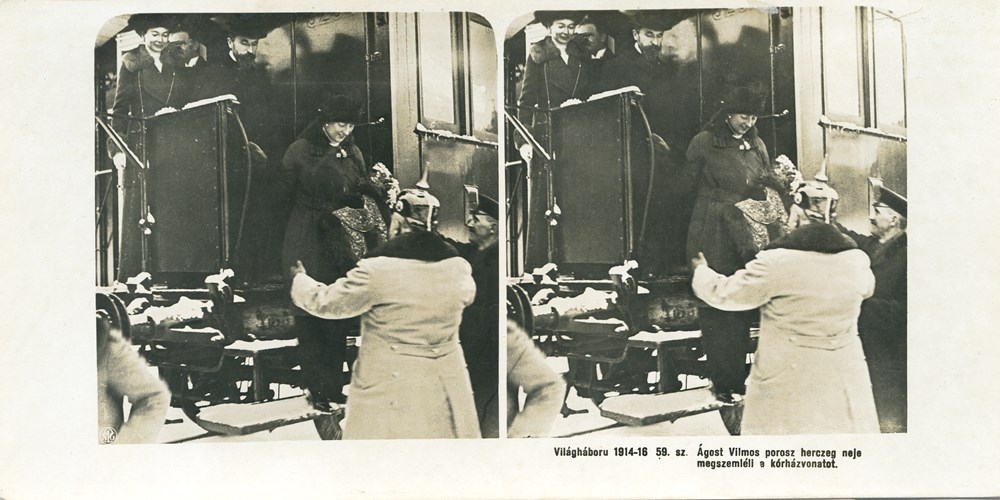 "Ágost Vilmos porosz herczeg neje megszemléli a kórházvonatot" - The wife of Prince August Wilhelm of Prussia inspects the hospital train