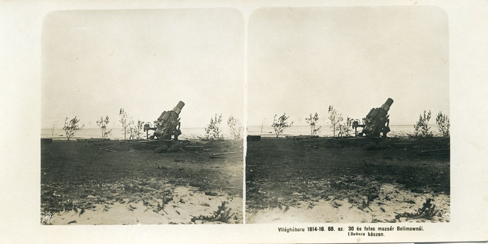 "30 és feles mozsár Bolimownál. Lövésre készen" - 30.5 cm mortar at Bolimaw. Ready to fire.