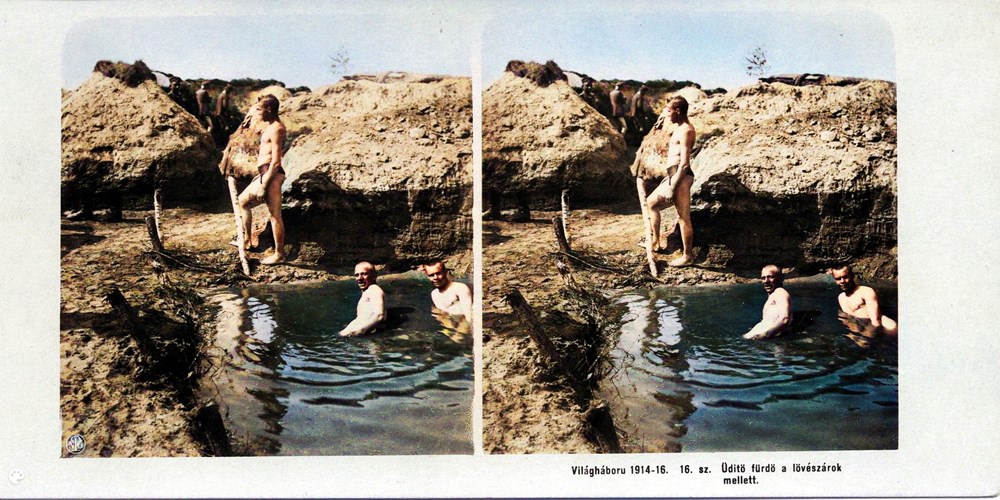 "Üditö fürdö a lövészárok mellett" - Refreshing bath next to the trenches.